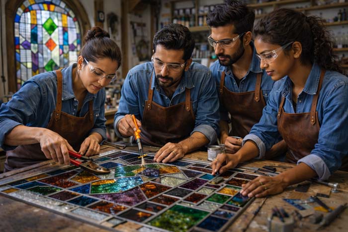 Welcome to Granth Handicrafts (sister concern of Shivangi Glass International), a leader in glass manufacturing. Glass product manufacturing, tableware, decorative items (vases, candle holders), and industrial glass work, creating diverse glass products from traditional to modern designs for domestic and export markets, supported by local artisans and large-scale facilities. Rooted in the rich glassmaking heritage of Firozabad – India’s Glass City, our manufacturing process blends age-old techniques such as glass blowing and molding with modern furnaces, temperature control systems, and finishing tools. This balance allows us to create products that are both aesthetically refined and structurally reliable.